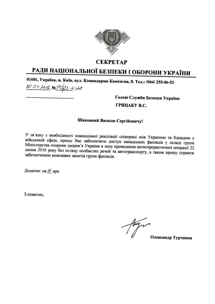С украинской стороны операцию курировал Александр Турчинов (секретарь Совета национальной безопасности и обороны Украины), а командование Генштаба Минобороны Украины «наблюдало», ожидая результата и подробностей. СБУ лишь получало распоряжения обеспечить беспрепятственный доступ «канадских представителей Минздрава Украины» непосредственно в зону АТО без каких-либо проверок и досмотров. При этом ключевые лица СБУ знали о сути происходящего, однако им была отведена лишь роль статистов и наблюдателей.