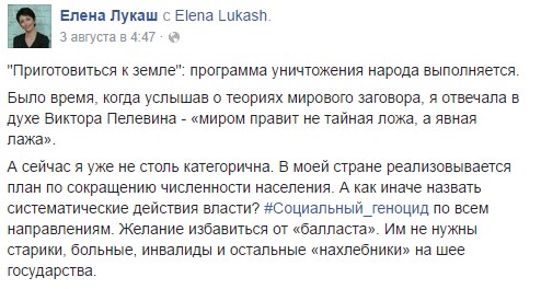 Елена Лукаш: «Приготовиться к земле»: программа уничтожения народа выполняется