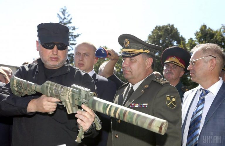 В Сети высмеяли фото Турчинова, стреляющего из деревянного автомата с заделанным стволом