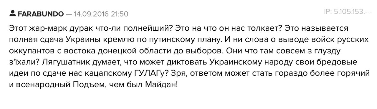 Потому и приняли коллективное решение не выполнять. И нечего нервировать их дурацкими предложениями. Зарвавшимся немцу и французу вот прямо так и было заявлено, что Украина никогда и ни за что не согласится примириться с сепаратистами.