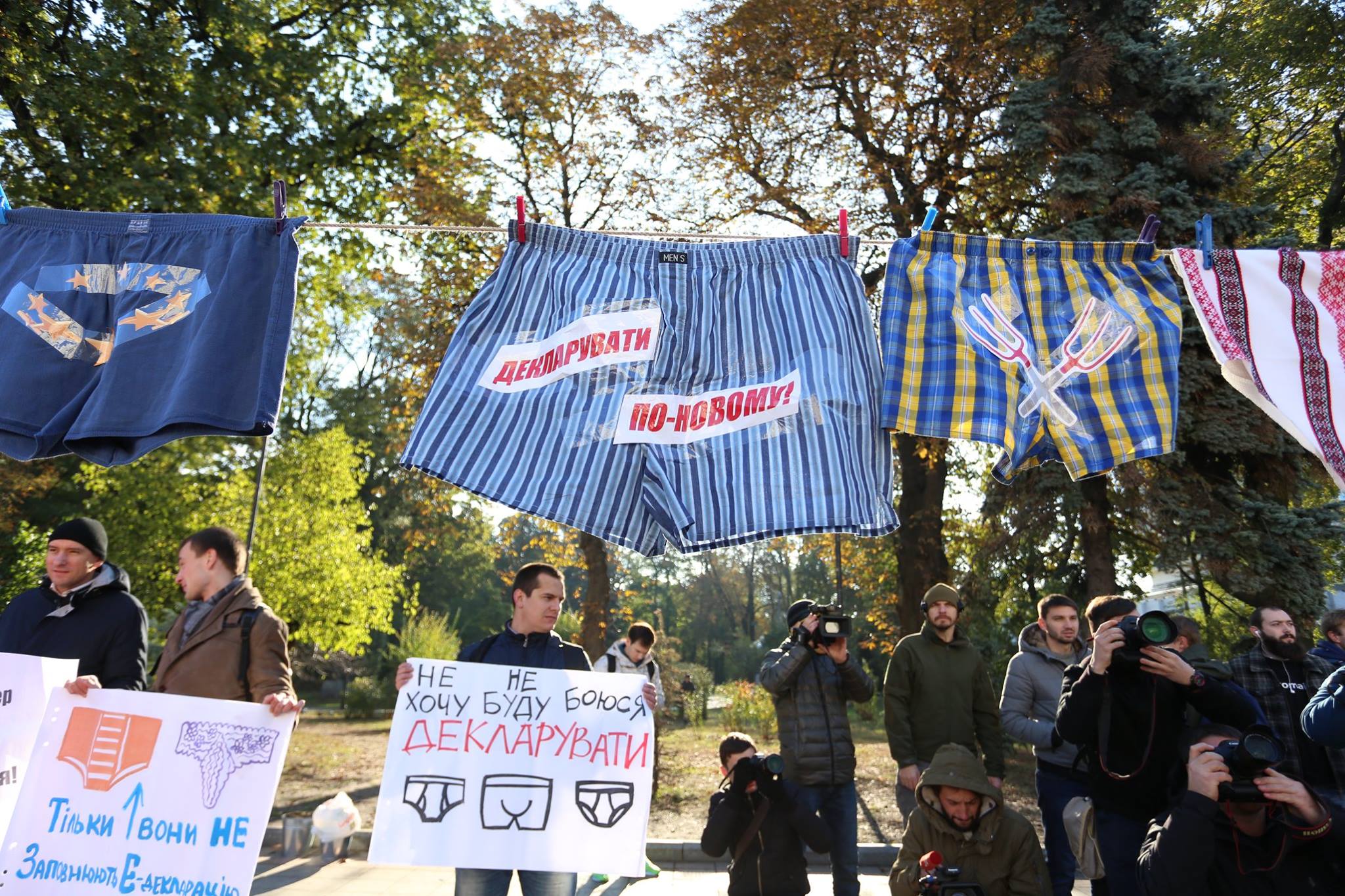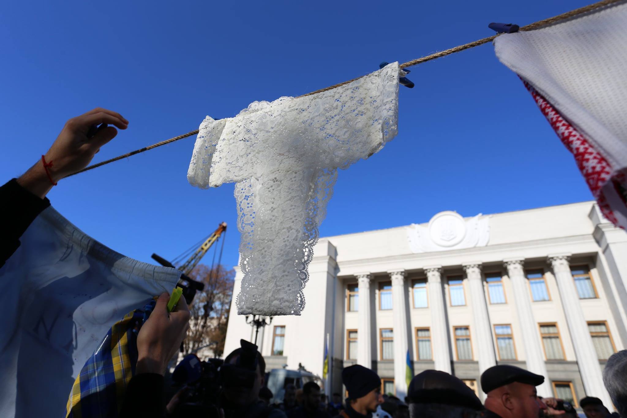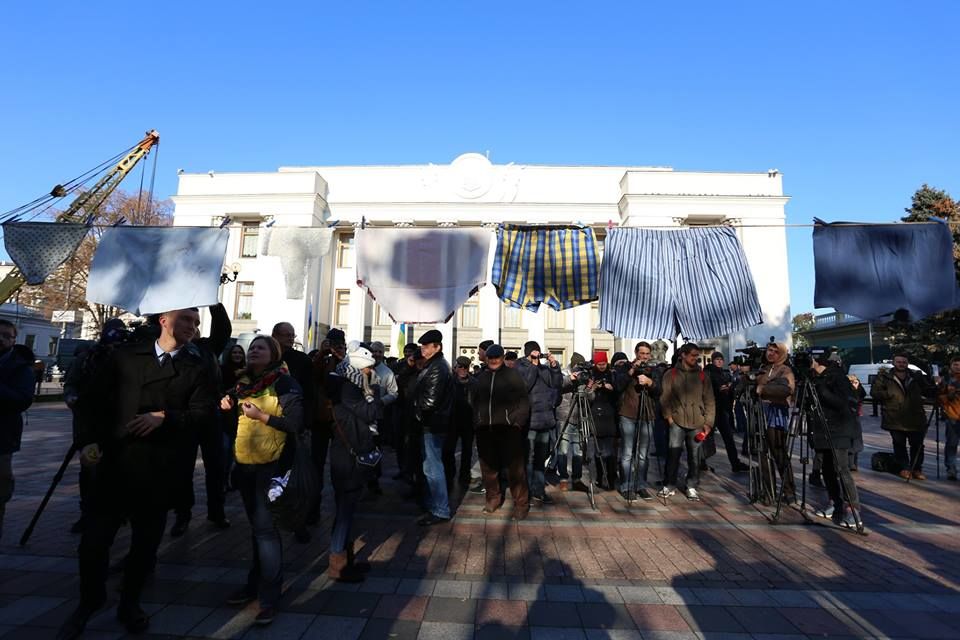 В поисках кружевных труселей: У Верховной Рады развесили трусы, призывая депутатов задекларировать доходы