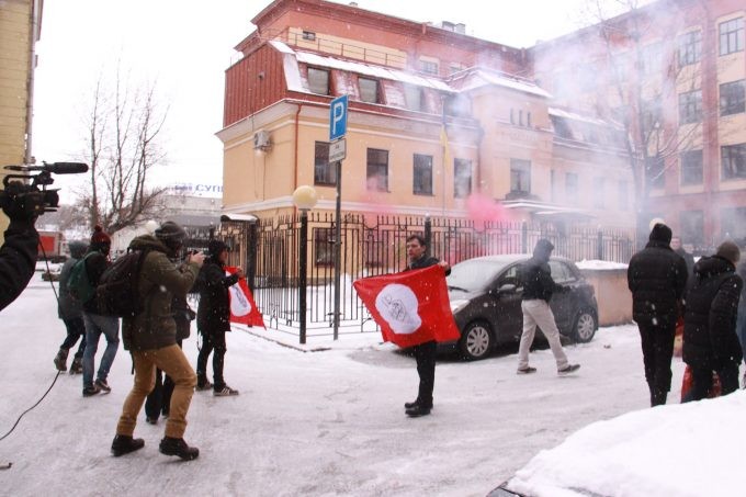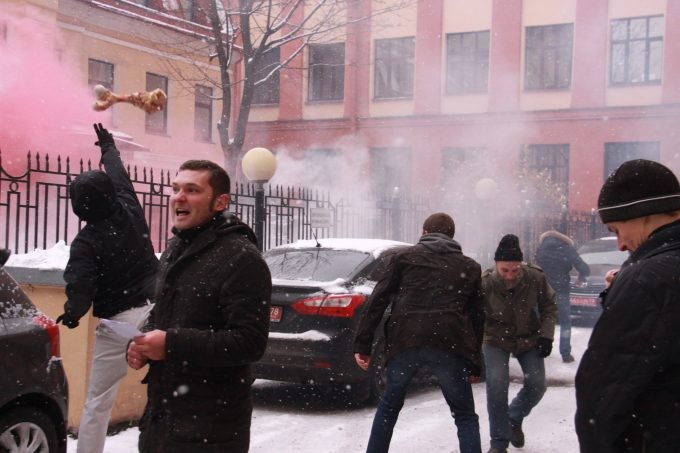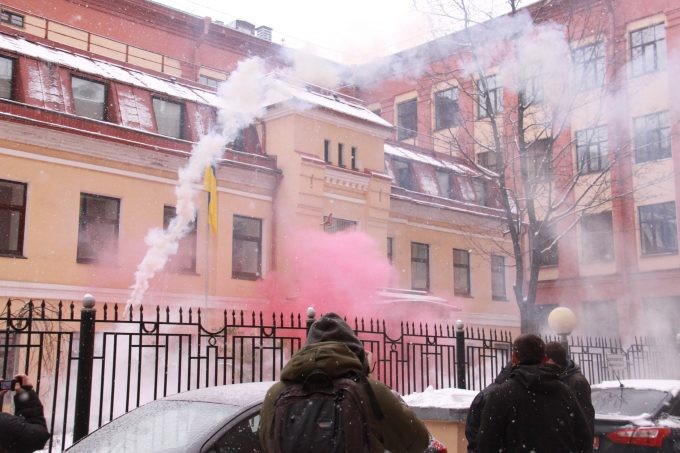 В субботу нацболы в Санкт-Петербурге атаковали консульство Украины, забросав здание дымовыми шашками и говяжьими костями. «Жрите кости, а не людей!», — скандировали нацболы, напомнившие о продолжающихся обстрелах и гибели мирных жителей на Донбассе.