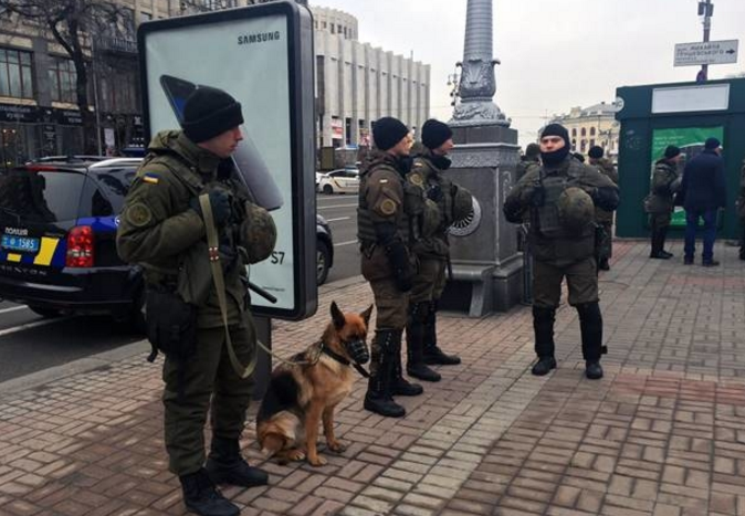 В центре Киева находятся значительные силы полиции и Национальной гвардии. В связи с годовщиной начала "евромайдана", который здесь высокопарно назвали "Днем Достоинства и Свободы" — в Киеве усилены меры безопасности: подразделения Национальной полиции и Национальной гвардии переведены на работу в усиленном режиме, частично перекрыто движение в центре города.
