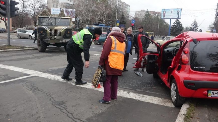 В Мариуполе на опасном перекрестке военный ГАЗ протаранил Peugeot