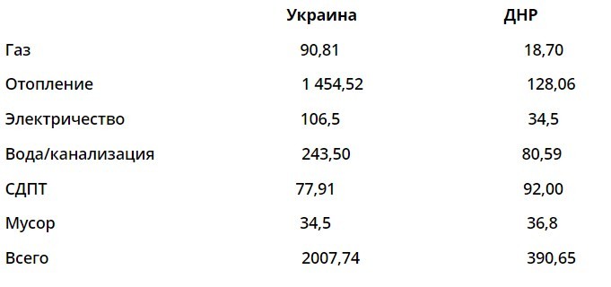 Прежде чем перейти к сути — для просветления — я тут вам посчитала «коммуналку». По тарифам, действующим на территории Украины — демократического государства, где победила «революция достоинства», и в «оккупированной» ДНР, где «правят русские террористы».