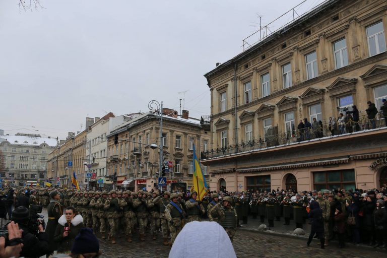 Украинская армия устроила парад в центре Львова, приуроченный ко Дню Вооруженных Сил.
