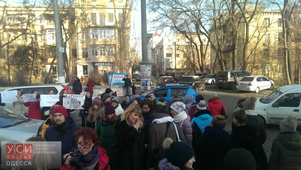 Студенты Одесского национального университета им. И.И. Мечникова перекрыли проезжую часть на улице Пастера, возле центрального корпуса вуза, и на Французском бульваре возле гуманитарного корпуса ОНУ. Таким образом, они устроили акцию против принятого 6 декабря Верховной Радой закона №5130, который в будущем отразится на стипендиях.