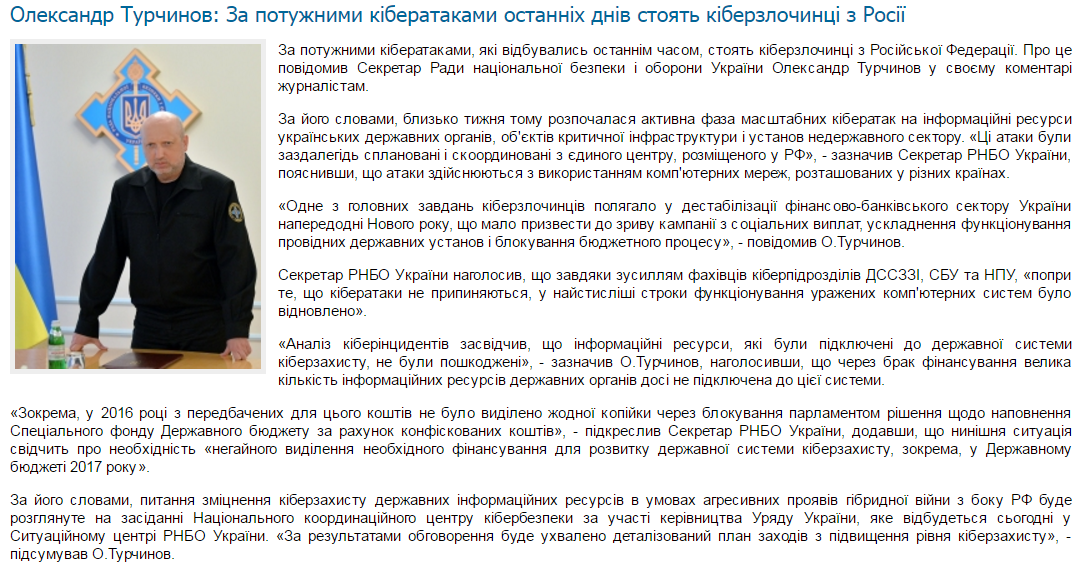 «Одна из главных задач киберпреступников заключалась в дестабилизации финансово-банковского сектора Украины накануне Нового года, что должно привести к срыву кампании по социальным выплатам», — сказал он.