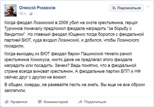 Об этом он написал на своей странице в Facebook. К слову, пост нардепа озаглавлен “О Пашинском и пьяном быдле на дорогах”