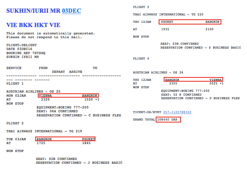 «Ночью со 2 на 3 января, а точнее в 23.20 лидер Радикальной партии Олег Ляшко ступил на борт самолета, который умчал его из города Вена в солнечный Таиланд. В Вену Ляшко прибыл накануне из Киева. Зимние каникулы политик проведет со своим заместителем по Радикальной партии и кумом Юрием Сухиным. Пункт их следования — остров Пукет. Этот курорт известен своими пляжами с белым песком, разрывными дискотеками, а также различного рода плотскими утехами», — утверждает издание.