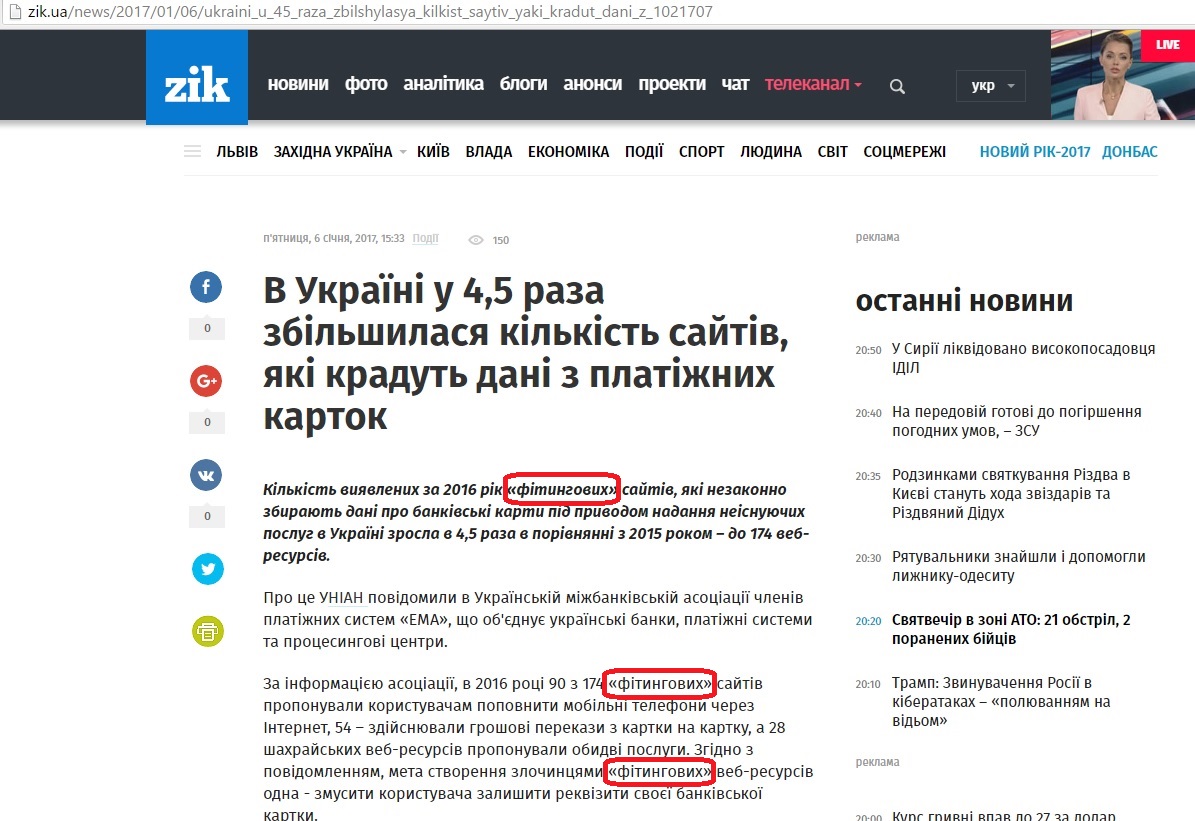 Вот например как выглядит попытка рассказать о росте украинских мошеннических сайтов, специализирующихся на выманивании сведений о банковских картах - фиШинге. (сам по себе рост таких сайтов уже самостоятельная перемога).