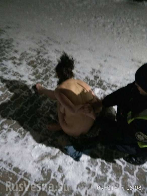 На Западной Украине пьяная женщина разделась догола на морозе и прокляла полицию.