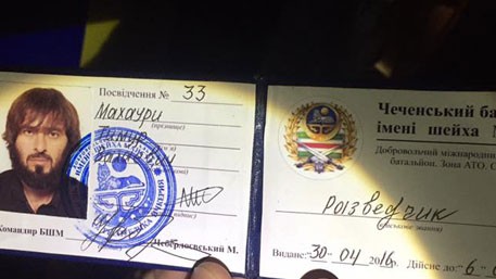 Проведя осмотр, стражи порядка обнаружили у управлявшего машиной гражданина Грузии два пистолета с боевыми патронами. Кроме того, у одного из задержанных имелось при себе удостоверение «разведчика» на имя Тимура Махаури, якобы выписанное чеченским батальоном имени шейха Мансура на украинском языке.