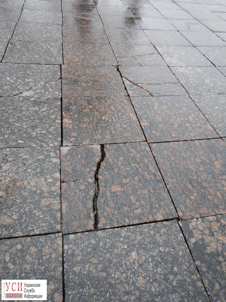 Подход-то к лестнице (сама площадь у Дюка) уверенно начал проседать. Пошли не просто трещины «гранитных» плит (замененных лет 5-10 назад) вокруг Дюка. Сама площадь начала «клевать носом». Скоро так у нас и сам Дюк примет «пизанскую» позу…если вообще не провалится, – отметил эколог.