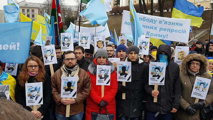 «Три года назад жители Крыма вышли на мирный марш, чтобы продемонстрировать свою солидарность с Украиной. На следующий день Россия прибегла к открытой агрессии и захватила полуостров, взяв в заложники миллионы людей».