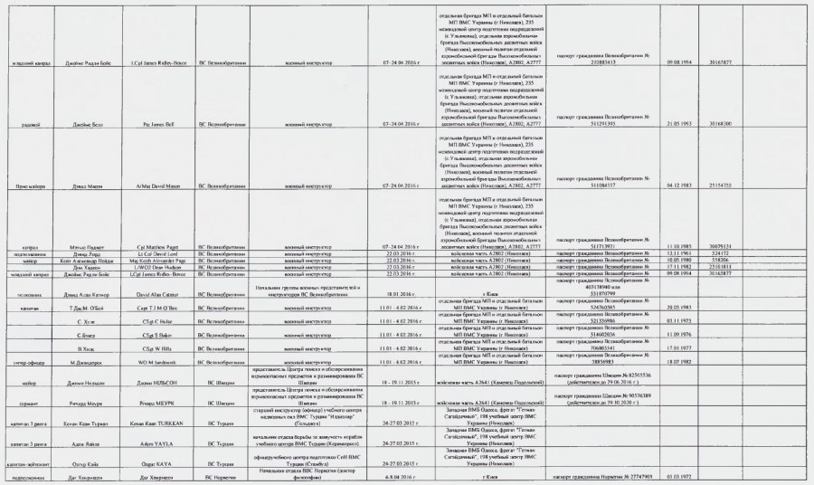Списки сотрудников СБУ и иностранных инструкторов в зоне АТО