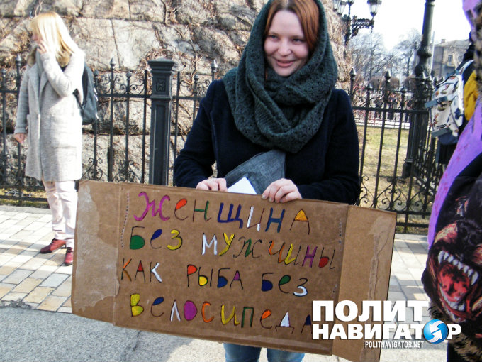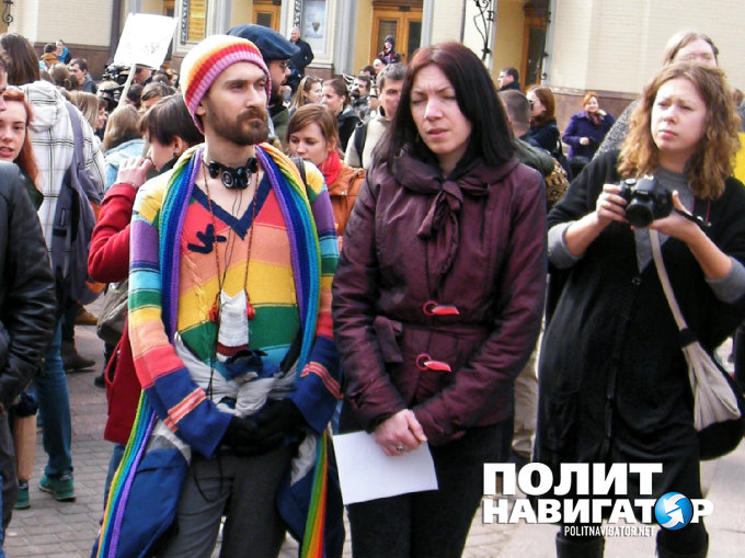 Стоит отметить, что на акции корреспондент «ПолитНавигатора» увидел также участников марша проституток, который проходил недавно в правительственном квартале Киева и о котром можно почитать в нашем репортаже «В Киеве участники марша проституток прошли с портретами своих кумиров — проституток украинской политики».