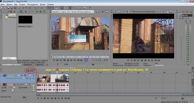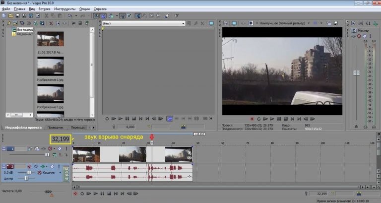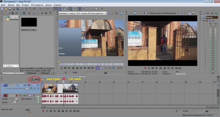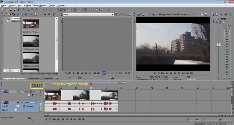 Разберем сначала видео со стрельбой 2-го танка (первое видео) используя программу для работы с видео Sony Vegas Pro.