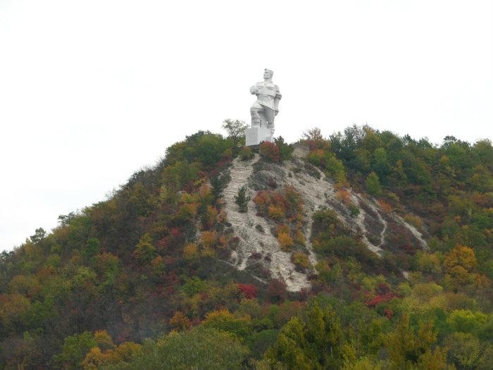 Памятник был воздвигнут еще в 1927 году, строили его методом заливки бетона в форму-каркас, высота памятника без постамента– 22 метра. Примечательно, что монумент пережил гитлеровскую оккупацию без особых потрясений, а вот украинскую оккупацию, похоже, не переживет.