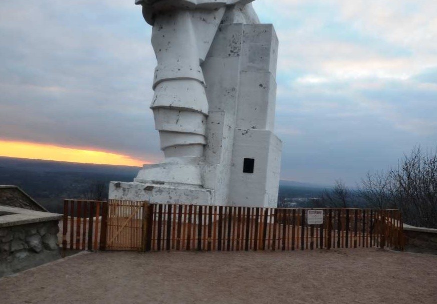 Памятник действительно не в лучшем виде находится, как и всё что на Донбассе еще уцелело за более чем 20 лет украинской оккупации, ремонтировать его явно никто не собирается. Там даже не в самом памятнике проблема а в грунте под ним, я еще до войны слышал что грунт подмыло водой, этот монумент стоит на меловой горе. Ну, в общем, в Краматорске и Славянске считают, что памятнику пришел конец. Оккупанты его снесут под видом «аварийно опасного» и на это деньги найдут безусловно, хотя на восстановление ими же, украинскими обстрелами поврежденного жилья людей в Славянске не выделили ни копейки.