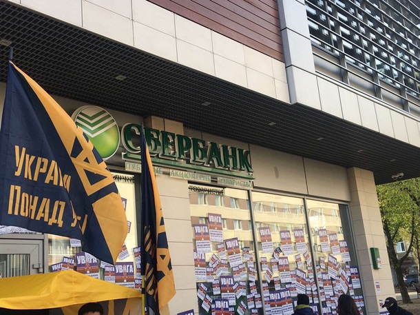 Представители Национального корпуса почти месяц блокировали работу "дочки" российского банка. Блокада была ненадолго прекращена, однако позже они возобновили акцию и требуют, чтобы российские банки ушли с украинского рынка.