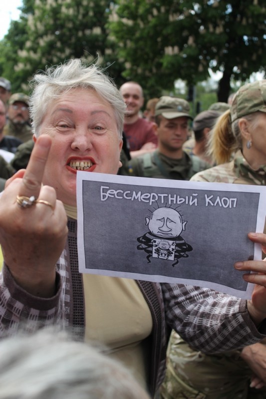 Ничего мужского кроме среднего пальца у настоящего украинского офицера-десантника для демонстрации дамам не нашлось, увы. Так с кем нам примиряться-то? С тупой биомассой и кастрированным быдлом в погонах, нападающим на стариков-ветеранов (см. фото под спойлером)???