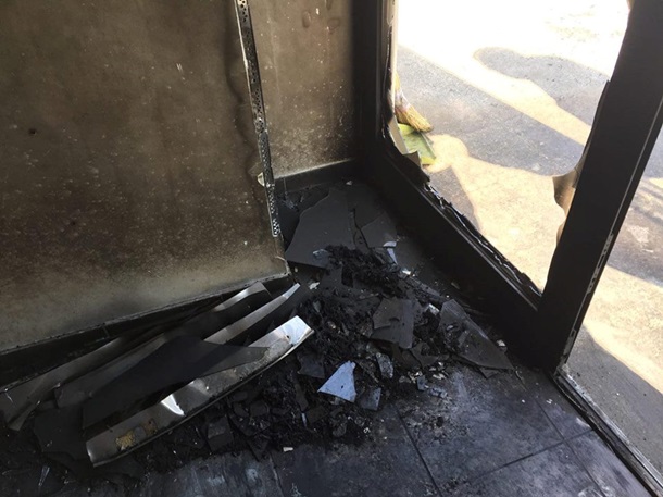 Как сообщается, ночью двое неизвестных бросили бутылки с зажигательной смесью в офис "Оппозиционного блока".