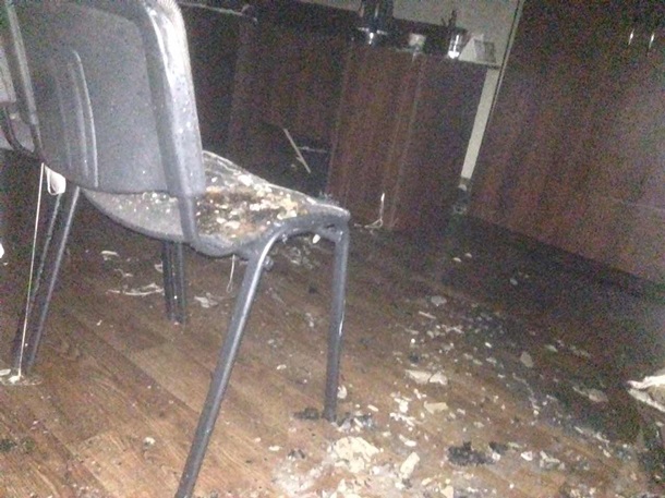 Там также горели старые автомобильные шины у входной двери. Но пламя уже охватило натяжной потолок и офисную мебель в середине помещении общественной приемной. Огонь распространился на общую площадь 21 кв м. Этот пожар был ликвидирован в 3:08.