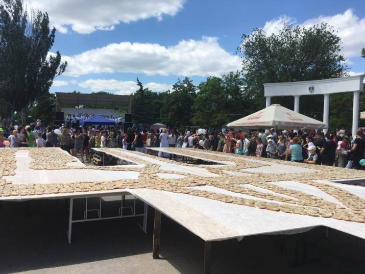 «Далее все эти «угощения» пол дня лежали под открытым солнцем, дул ветер, песок… А потом горожанам предложили торжественно скушать «НАЦИОНАЛЬНЫЙ РЕКОРД», в виде герба Украины. Все верно, не рекорд в увеличении доходов горожан, не рекорд в темпах приросты экономики района, а рекорд в поедании заветренного сала с песком в виде национального символа. ВатаTV смаковала этот «креативный подход» по полной программе на всех своих сайтах и телеканалах. Случаи с отравлениями тоже имели место! Да уж, отличились…», — сетует издание.