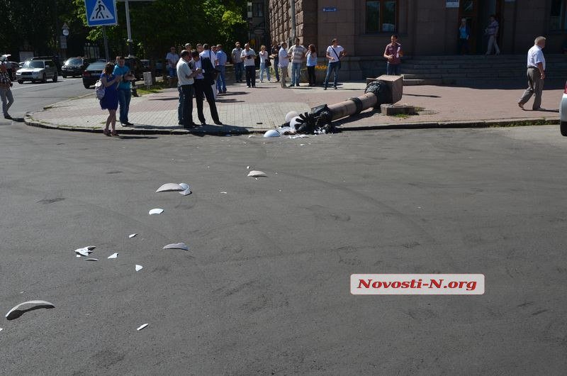 Днем в четверг, 8 июня, на ул. Адмиральской в Николаеве, женщина на автомобиле «Лексус» снесла гранитный фонарный столб возле Николаевского горисполкома.