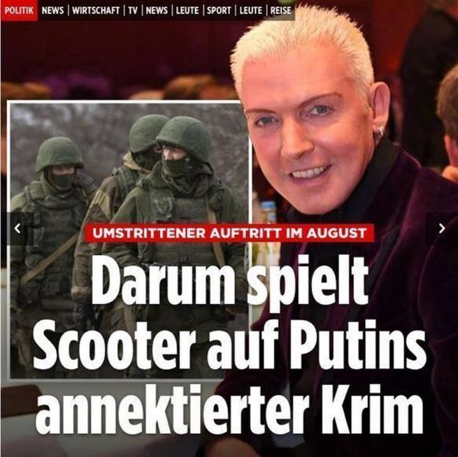 Сами понимаете, допустить подобное — получить удар в самую гиднисть. И чистилища «миротворца» в данном случае мало. Потому кастрюлеголовые решили раздуть скандал. Международный. Для чего был ангажирован известный русофоб из Bild Julian Röpcke, написавший донос на музыкантов на одной из передовиц некогда уважаемого издания. Но и это ещё не все. Подключился замгенпрокурора Украины, пригрозивший немецким музыкантам 8 годами тюрьмы.
