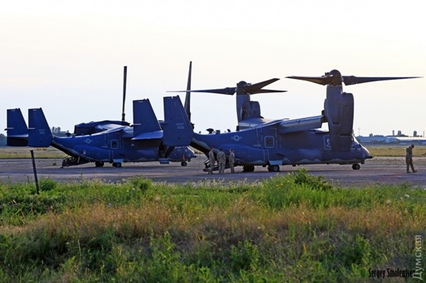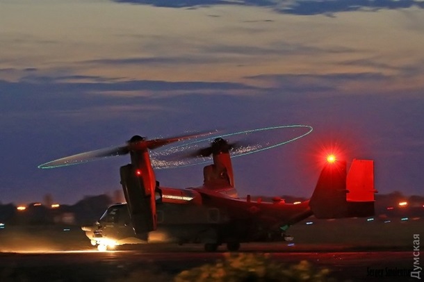 "Оспреи" направлялись на одну из военных баз в Николаевской области, чтобы принять участие в учениях Си Бриз-2017"… Одесса стала первым городом в Украине, где сели эти "диковинные птички", – пишет издание.
