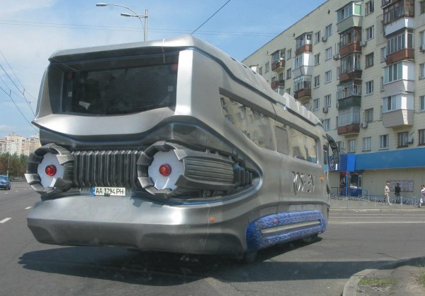 На дорогах Киева удалось сфотографировать новый туристический автобус с футуристическим кузовом.