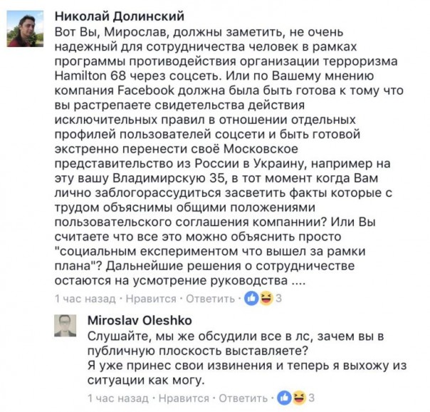 Теперь уже официально: Фейсбук совершает уголовное преступление, сливая данные своих пользователей украинскому сайту «Миротворец». Подробнее о начале истории здесь.