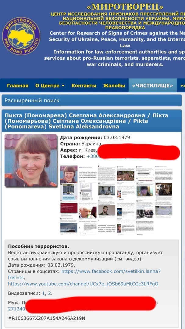 Кстати, я бы с удовольствием послушала комментарий о том, насколько данный факт является законным, правовым, демократичным и соответствует евростандартам от Порошенко, министра юстиции, генерального прокурора, омбудсмена и представителей международных правозащитных организаций. Очень хочется знать, как они оценивают этот конкретный случай. И что думают по поводу незаконного сбора и публикации персональных данных, а так же обвинений, сделанных на основе доносов.