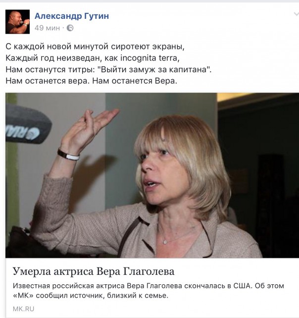 Вера Глаголева прожила яркую жизнь. Она состоялась как актриса, как режиссёр, как мать, как любящая и любимая женщина.