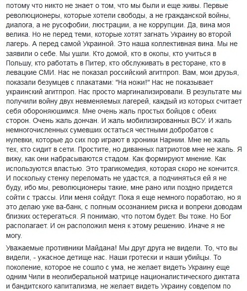 Эта дама яростно отскакала два майдана. Но после того, как провела свой отпуск в Питере, а потом вернулась в Киев, вдруг поняла, что «со мной здесь в принципе кончено»…