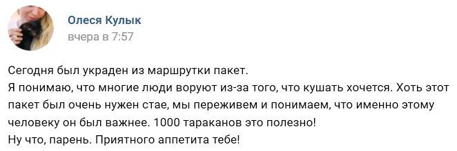 Известную зоозащитницу из Запорожья Алесю Кулык обокрали в маршрутке. Женщина заметила, что у нее стащили пакет.