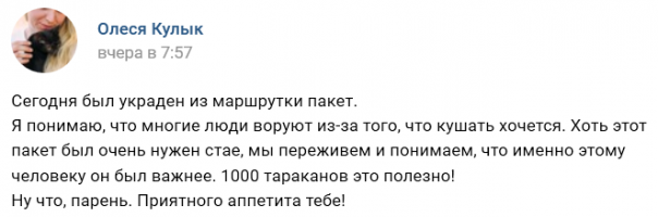 В пакете были тараканы, предназначенные для животных.