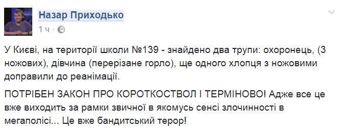 Резня в киевской школе: тремя ударами ножа убит охранник, девушке перерезали горло