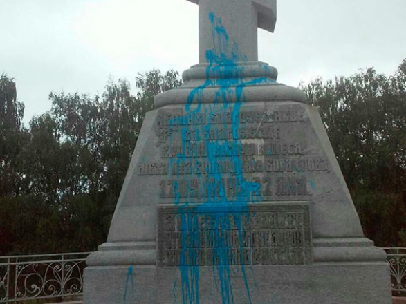 В Полтаве облили синей краской памятник Петру Первому и крест на могиле русских воинов