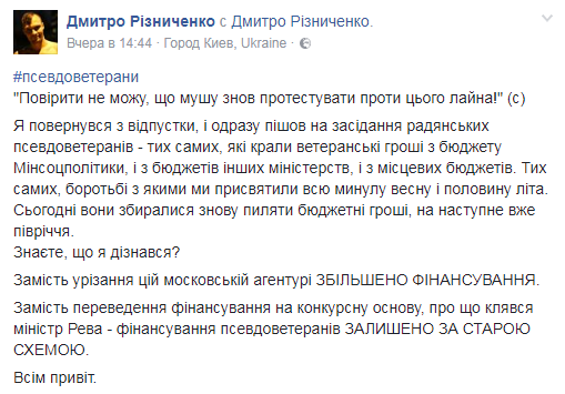 Вместо перевода финансирования на конкурсную основу, о чем клялся министр Рева - финансирование псевдоветеранов оставлено по старой схеме.