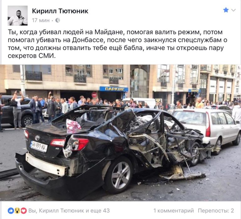 А задумывались ли вы, мрази, почему у вас теперь каждый день то граната, то машина взрывается?! А вопрос себе и СБУ о том, что делал этот боевик, на котором пробы негде ставить, в вашем Киеве — задали?!