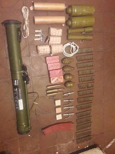 Отмечается, что информацию о возможном хранении оружия правоохранители получили в рамках расследования другого уголовного производства. При обыске были обнаружены и изъяты более 770 патронов различного калибра, четыре тротиловые шашки, гранатомет, два корпуса противотанковых гранат и две рукоятки к ним, четыре корпуса ручных осколочных гранат и запалы к ним, а также дымовые шашки, два глушителя, электродетонатор и прочее.