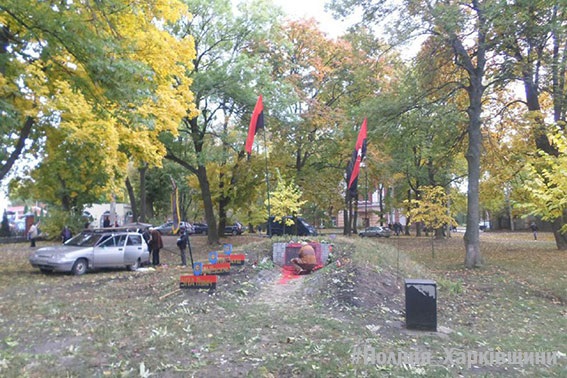 В ночь на субботу неизвестные облили красной краской "памятник воинам УПА" в парке Молодежный в Харькове, сообщает региональное управление Нацполиции.