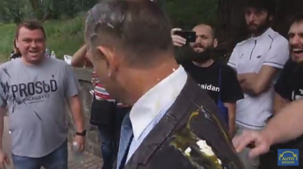 Народного депутата от Блока Петра Порошенко Олега Барну избили участники акции возле здания Верховной Рады.