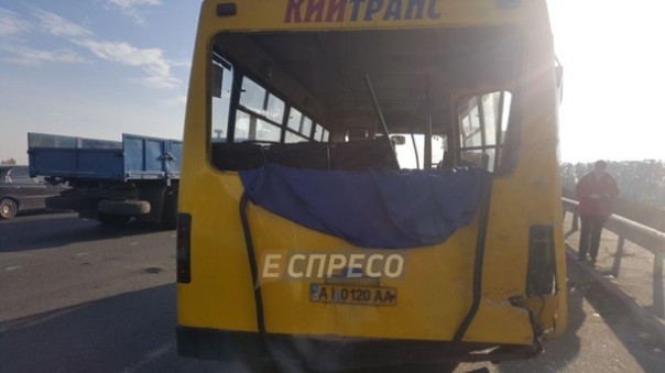 В Киеве грузовик врезался в маршрутку: восемь пострадавших