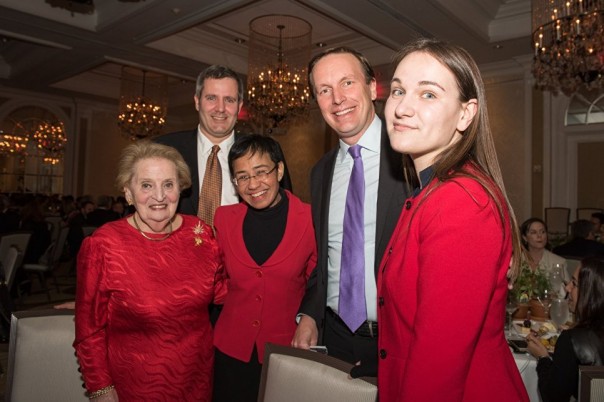 Секретарь Мадлен Олбрайт, доктор Фил Ховард, Мария Ресса, сенатор Крис Мерфи и Марго Гонтар (Stopfake.org) на ужине по случаю вручения премии NDI 2017 Democracy Award в Вашингтоне