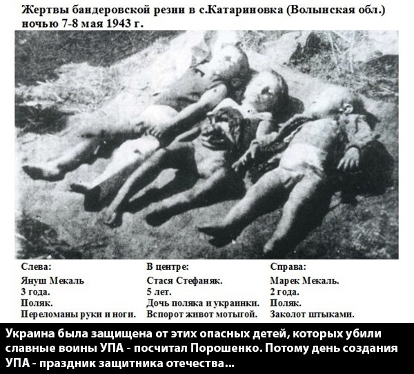 (дорогой читатель, эти ужасы страшно смотреть, но если ты хочешь в полной мере понять насколько опасно для окружающих это психическое заболевание "украинство", ты можешь найти множество ужасных фотографий и свидетельств деятельности этих нелюдей в общем доступе по запросам: УПА, бандеровцы и т.п. - прим. автора)