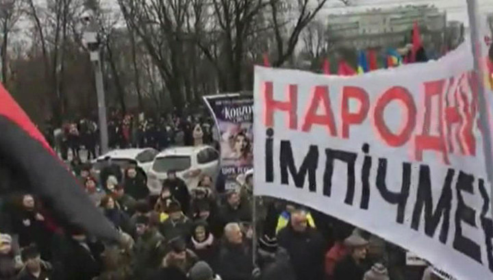 В Киеве снова неспокойно: новый митинг и шествие "Марш за импичмент" устроила партия Михаила Саакашвили, передает канал "Россия 24". Несколько тысяч человек собрались в парке Тараса Шевченко и колонной прошли по центральным улицам. Они несли флаги Украины и националистов, скандировали антипрезидентские лозунги и требовали "народного импичмента" Петра Порошенко.